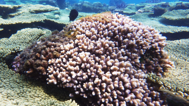 比較深水域的珊瑚共生藻就還活得好好的...