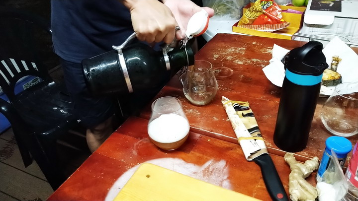 他的私釀生啤酒...