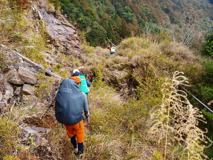 回程的這個大崩壁後就是踢林道與陡下山徑...